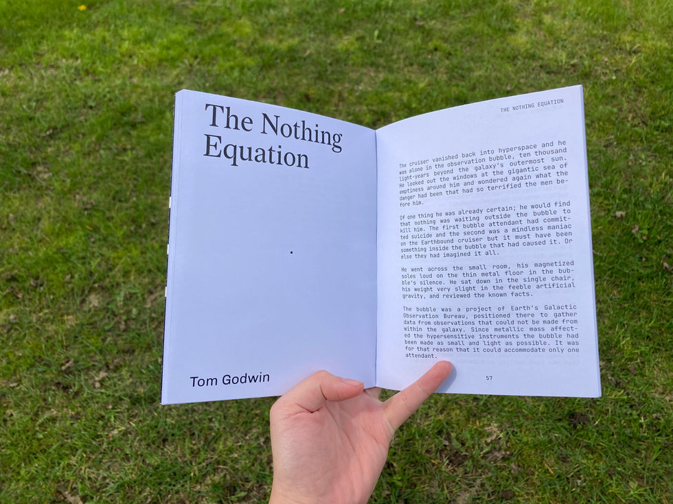 Cover design, type design, and page layouts of a sci-fi- anthology done for a personal project. The book is a soft cover and perfect bound with PVA glue.
